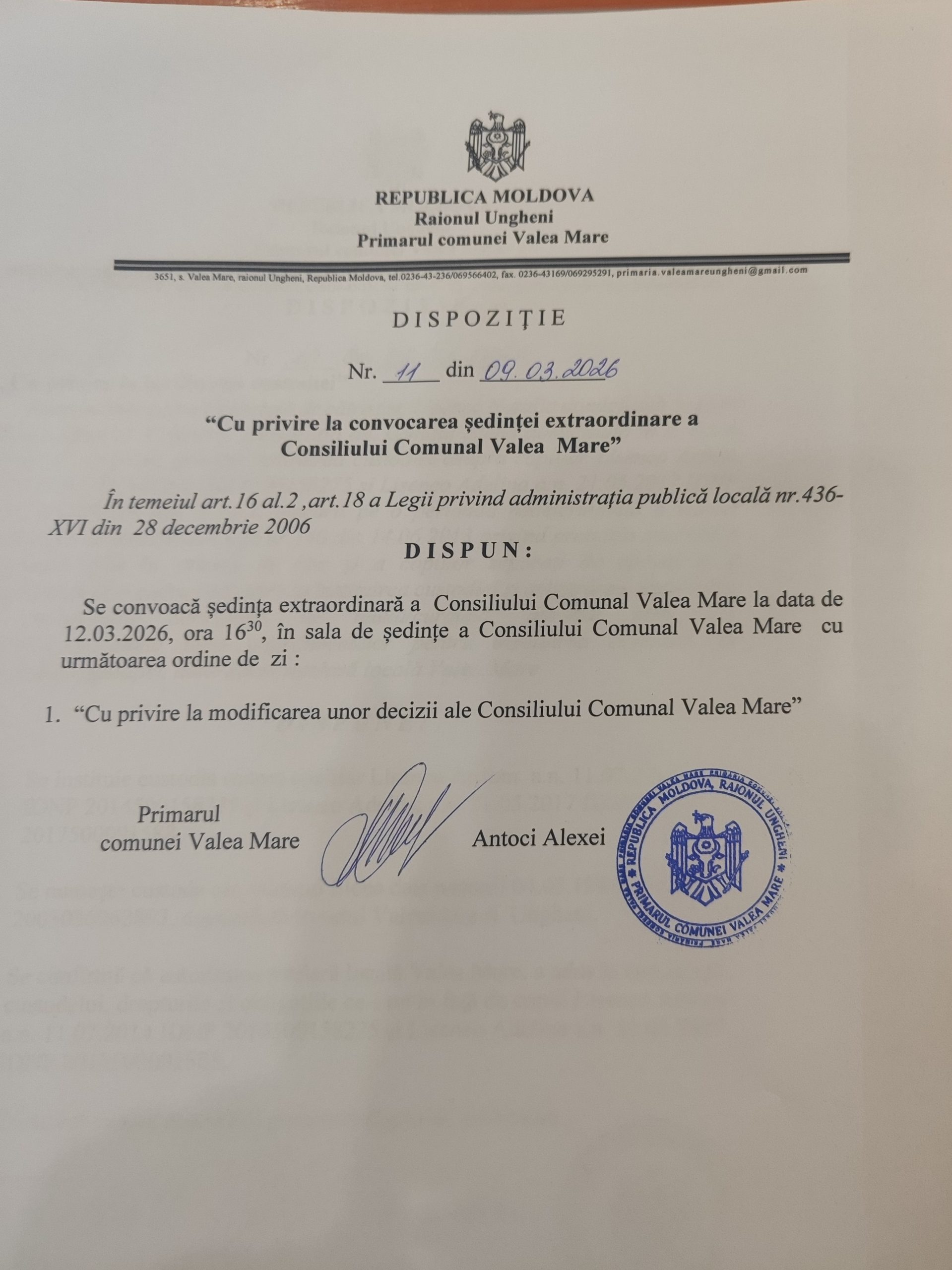 19 Martie, 2026 Noutăți 🚨 ATENȚIE, LOCUITORI AI COMUNEI VALEA MARE! 🚨 🚨 ATENȚIE, LOCUITORI AI COMUNEI VALEA MARE! 🚨 🔥 ARDEREA VEGETAȚIEI USCATE ESTE INTERZISĂ! 🔥 Primăria […] Citește mai mult