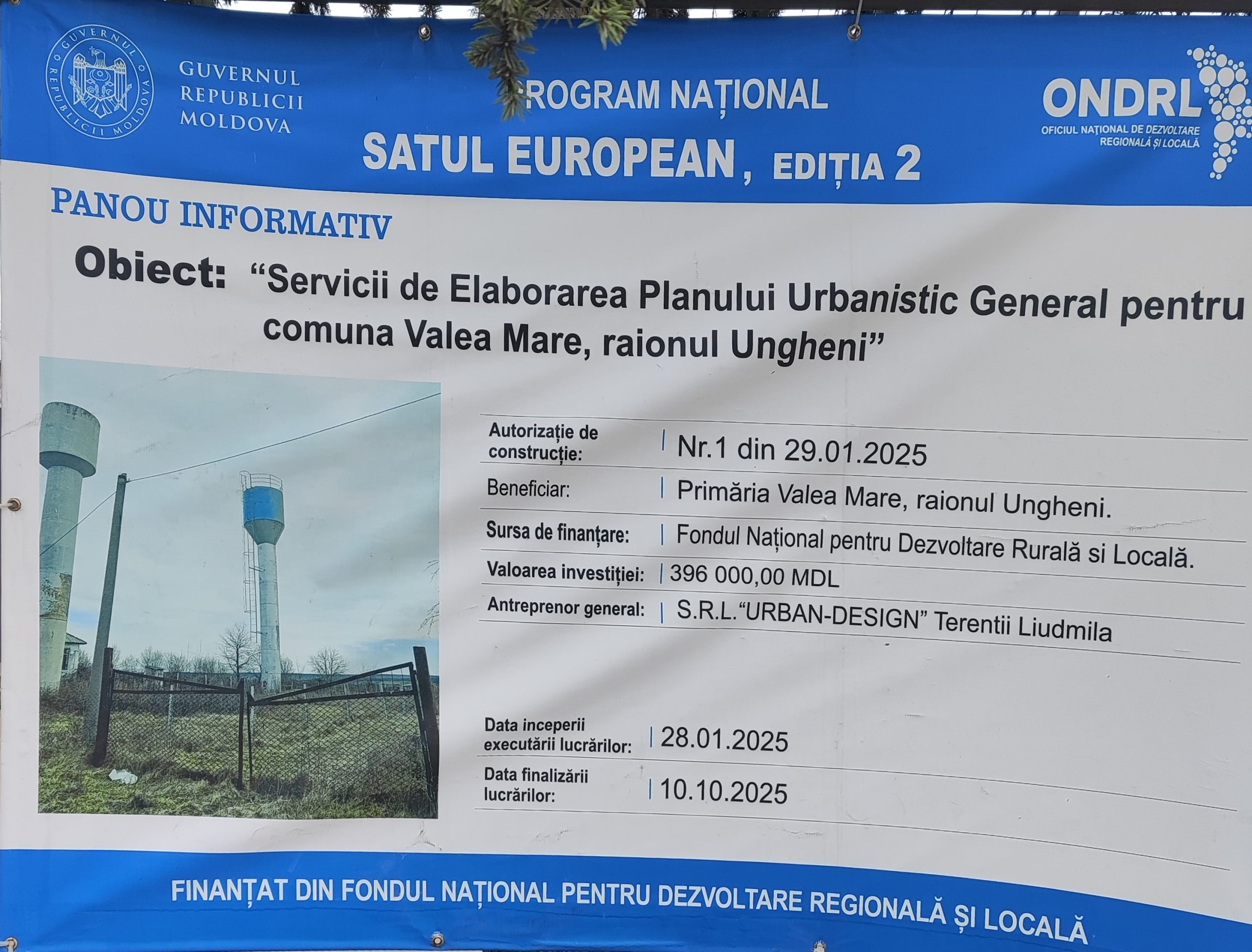 - obiectivul ” Servicii de Elaborare Planul Urbanistic General pentru comuna Valea Mare raionul Ungheni” fiind finanțate de FNDRL